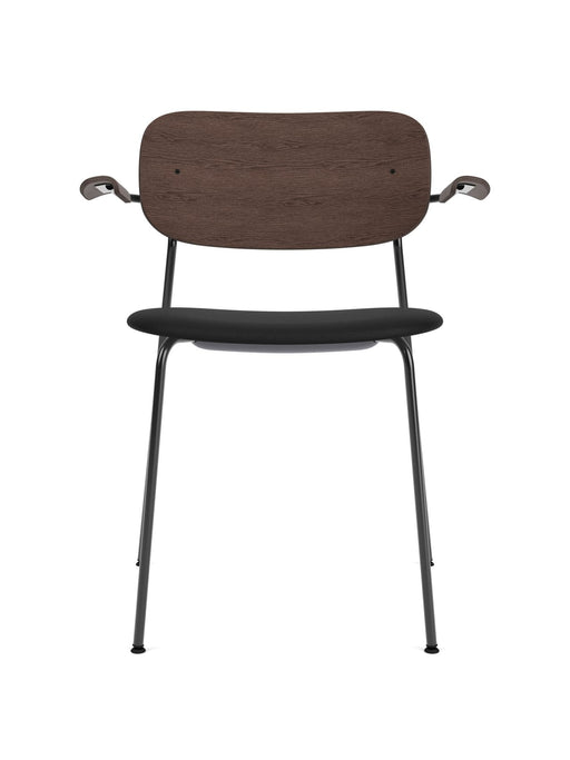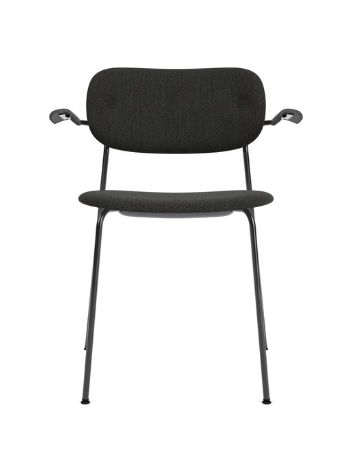 Co Dining Chair w/Armrest, Black Steel Base, Upholstered Seat and Back PC1T, Oak Arms, Black Oak, EU/US - CAL117 Foam, 0198 (Black), Re-wool, Re-wool, Kvadrat