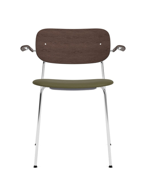 Co Dining Chair w/Armrest, Chrome Steel Base, Upholstered Seat PC0L, Oak Back and Arms, Dark Stained Oak, EU/US - CAL117 Foam, 0441 (Army), Sierra, Sierra, Camo