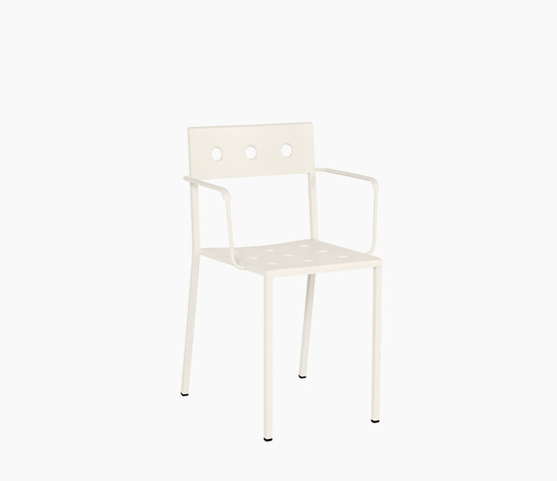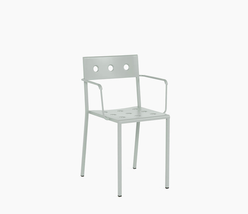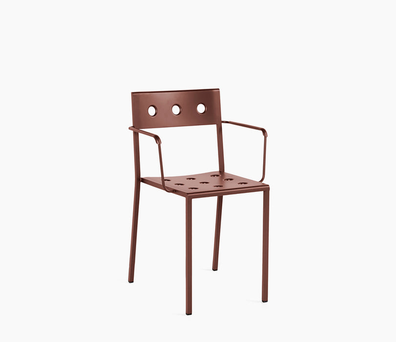 Designed for HAY by Ronan and Erwan Bouroullec, the Balcony Chair is an elegant and functional dining chair for outdoor use. The square design is softened by the rounded backrest, with the multiple holes in the seat and backrest reinforcing the construction as well as creating a distinctive expression. Made from powder coated steel with an external primer for optimum strength and durability, the Balcony is available in a variety of different color options. The chair's stackable design means it is suitable for all types of spaces, from small balconies and terraces to gardens and other larger outdoor areas.