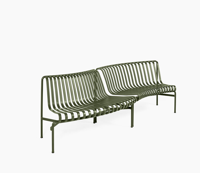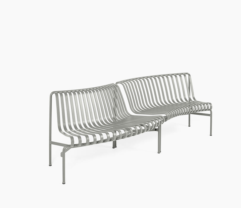 Designed by French duo Ronan and Erwan Bouroullec, the Palissade Park Dining Bench is a modular bench designed for outdoor use. The curved frame comes in two variants, designed to curve in two different directions, allowing the seats to face inward, outward, or a combination of the two. By connecting a minimum of two benches, custom seating arrangements can be created in layouts such as circles, waves and arcs. This combination features two inward-facing seats, providing a starting point for customizing different layouts.