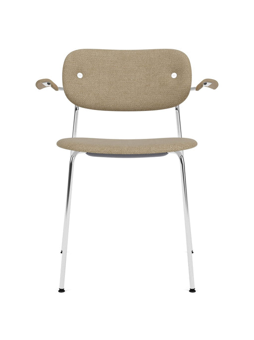 Co Dining Chair w/Armrest, Chrome Steel Base, Upholstered Seat and Back PC0T, with Oak Arms, Natural Oak, EU/US - CAL117 Foam, 02 (Beige), Audo Bouclé, Audo Bouclé, Audo