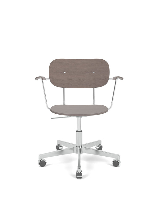 Co Task Chair w/Armrest, Star Base w/Casters Hard Floor, Polished Aluminium, Dark Oak Seat, Back And Arms