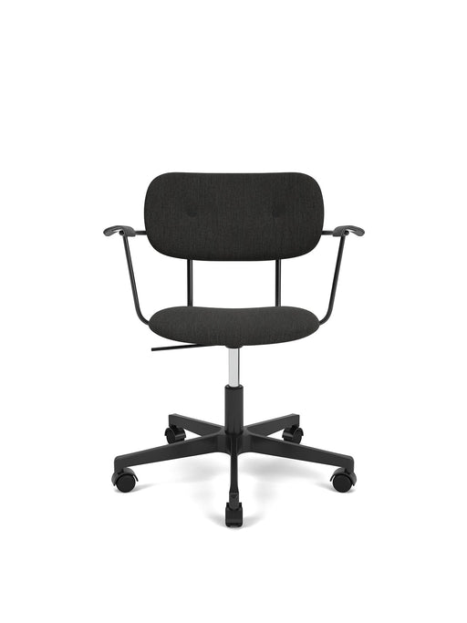 Co Task Chair w/Armrest, Star Base w/Casters, Black Aluminium, Seat And Back Upholstered With PC1T, Oak Arms, Hard Floor, Black Oak, EU/US - CAL117, 0198 (Black), Re-wool, Re-wool, Kvadrat