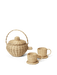 The Rattan Tea Set is a delightful addition to any child's playtime repertoire and the perfect accessory for an enchanting kids play date. This charming set includes two cups and a teapot, all handcrafted from natural rattan. Designed to inspire imaginative play, the Rattan Tea Set is perfect for hosting a stuffed animal gathering or serving a parent a pretend cup of tea.