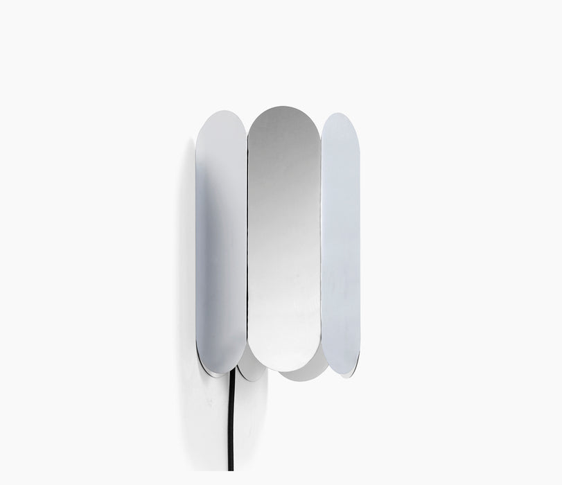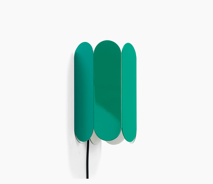 La lámpara de pared Arcs forma parte de una serie de diseños de arco creados para HAY por el dúo belga Muller Van Severen. Formada a partir de una cadena continua de arcos curvos que crean una elegante silueta festoneada, la lámpara proporciona una luz ambiental suave que sube y baja y juega con las formas y las sombras. La lámpara es fácil de montar y está disponible en dos variantes de montaje en pared, lo que ofrece opciones de instalación flexibles con una selección de cables de alimentación integrados e independientes. Arcs está fabricado en acero macizo y está disponible en varios colores o con una superficie similar a un espejo. Las diferentes soluciones de montaje dotan a la lámpara de una cualidad versátil, haciéndola apta para pasillos y grandes espacios, así como lámpara de noche o en pequeños rincones.