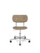 The seat, backrest, and armrests are fashioned from elegantly curved plywood. Additionally, the chair is equipped with castors for enhanced mobility. The column is constructed from extruded aluminum, and finally, the star base is crafted from die-cast aluminum. The chair can be raised and lowered 13 cm / 5,1".