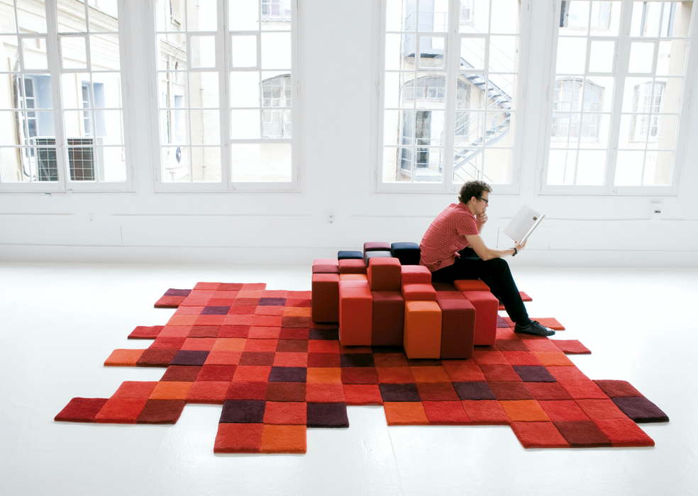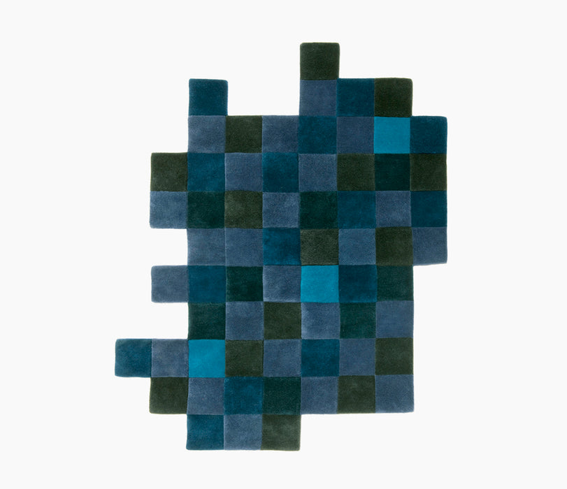 La idea surgió tras ver una imagen pixelada en baja resolución, que se materializó en una superficie tridimensional. La alfombra se hace haciendo que cada cuadrado tenga una altura diferente a la de los cuadrados contiguos.