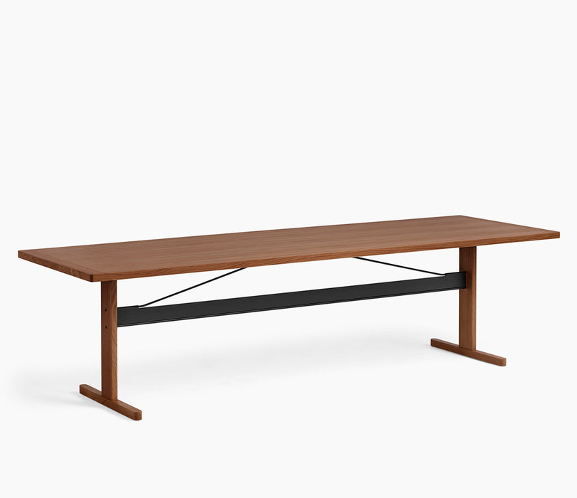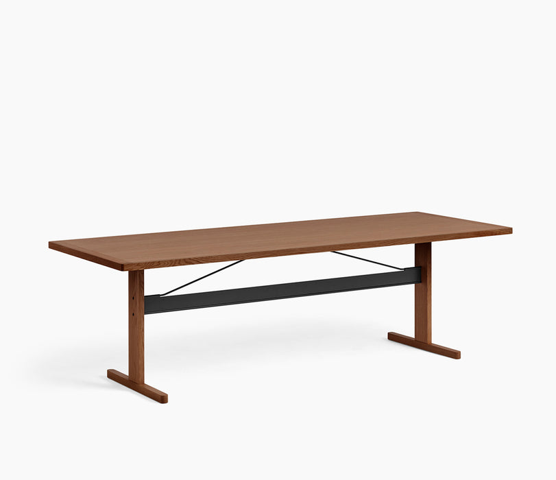 Inspirándose en la estética relajada de los muebles Shaker clásicos, los diseñadores franceses Ronan y Erwan Bouroullec diseñaron Mesa Passerelle, una interpretación actualizada que comparte la misma simplicidad y calidad en un contexto más contemporáneo. Con una construcción equilibrada y compacta, el tablero presenta bordes de madera maciza y una superficie superior de chapa, laminado o linóleo, con un núcleo de Lisocore®, un material avanzado de alta calidad que ofrece una gran resistencia y es extremadamente ligero. y fácil de mover. La construcción de abajo es igualmente robusta y funcional, con un marco de madera maciza y un travesaño de aluminio y acero que refuerza y estabiliza la mesa. La variedad de opciones de materiales, colores y tamaños de la Mesa Passerelle realza su calidad multifuncional, haciéndola igualmente adecuada para su uso como mesa de cocina, comedor o mesa de reuniones tanto en espacios públicos como privados.