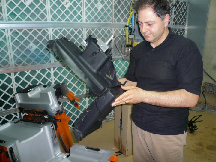 Material: moldura em aço lacado com resina epóxi. Apoio para os pés em alumínio fundido sob pressão. Assento em poliuretano autoportante integral.