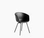 A cadeira AAC27 tem uma base de 4 pernas em aço polido ou lacado, o que dá à cadeira uma expressão mais formal. A concha está disponível em diferentes cores.