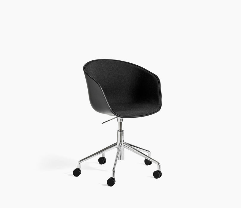 AAC52 é uma versão com ajuste de altura. A base de cinco patas está equipada com um elevador de gás semi-automático. A nova estrutura de alumínio tem rodízios, e a altura ajustável do assento varia de 42 a 56 cm.