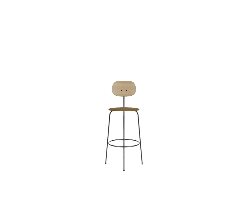 An homage to functionalism, the Afteroom Bar Chair Plus is a deconstructed design, stripped of unnecessary components to present a clean, minimalist aesthetic with high functional value. Its wide wood veneer backrest and generous upholstered seat ensure supreme sitting comfort, while the slender powder-coated metal frame is constructed for maximum stability with a foot ring that does double duty as a rest for feet. The result is a blissfully simple chair that embraces minimalism and clean lines without compromising on comfort.
