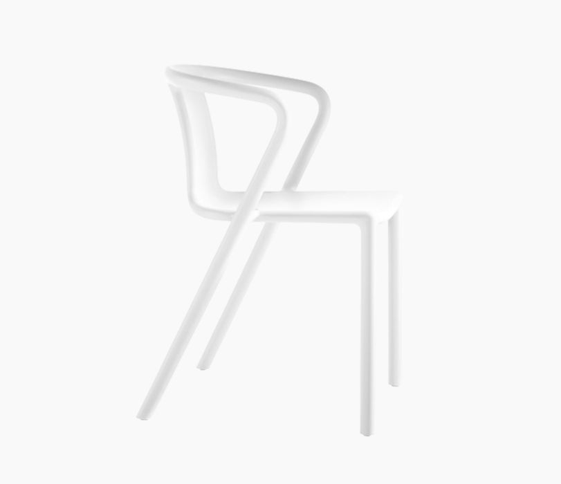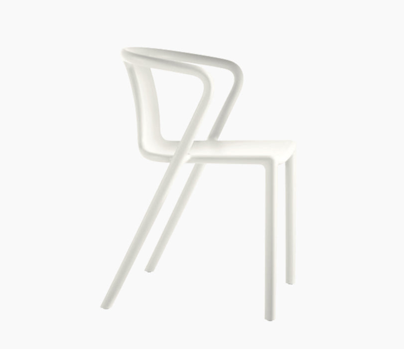 Cadeira empilhável com braços, adequada para uso ao ar livre.