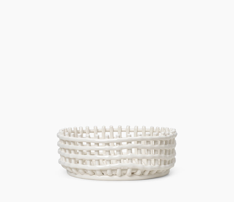 Trazendo técnicas tradicionais de cestaria para a cerâmica, as nossas cestas de cerâmica artesanais recriam a sensação familiar de recipientes tecidos.