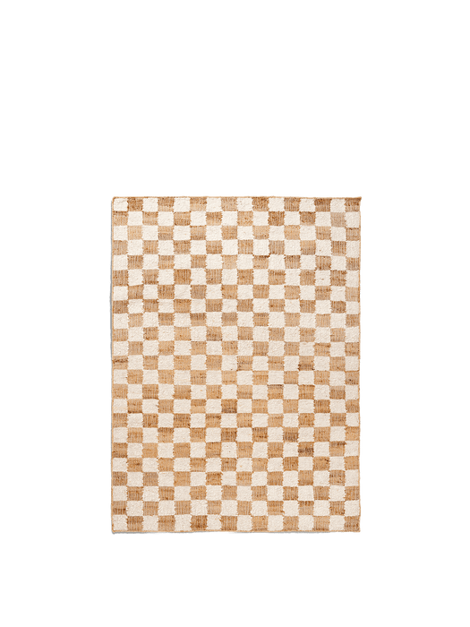 The Check Wool Jute rug collection showcases a harmonious blend of wool in calm, natural tones and natural jute, crafted into a timeless check design. The wool, hand-carded to create an irregular, comforting texture, brings a tactile richness to each rug. With it's classic pattern, the Check Wool Rug is a versatile staple, effortlessly complementing various interior styles with its understated elegance and artisanal quality.