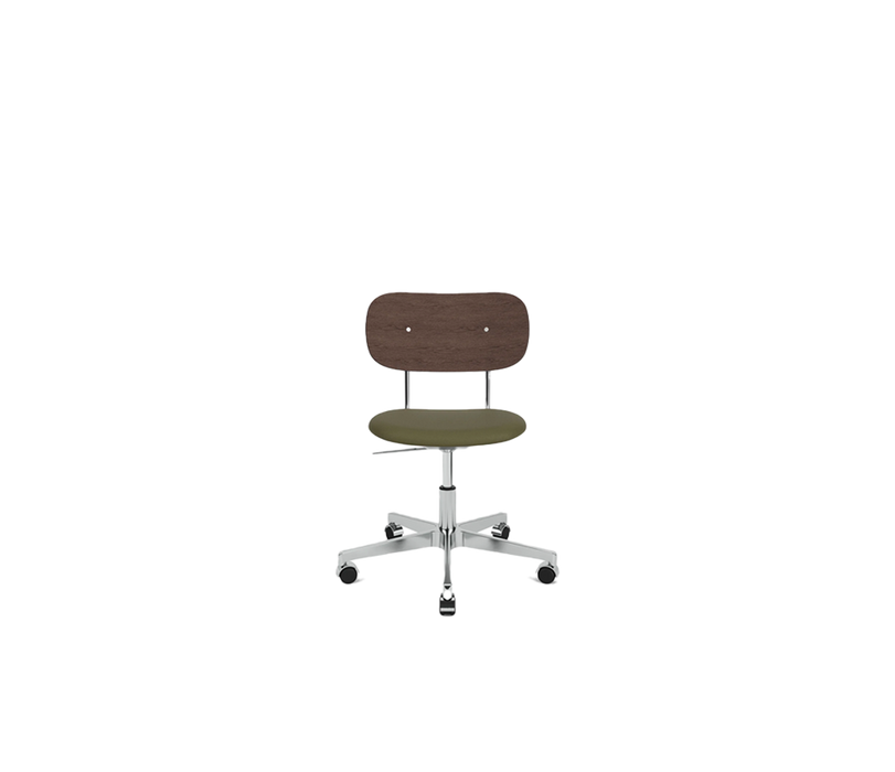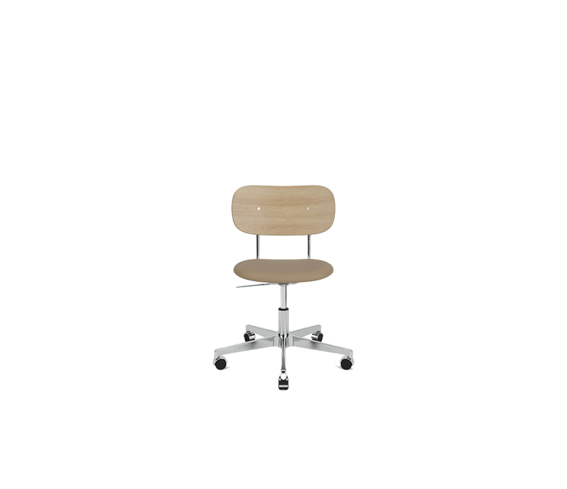 The Co Task Armchair seamlessly integrates sitting comfort and flexible function into its minimalist expression. Designed for a wide range of work settings and set on a five-star polished aluminium swivel base with casters, a height-adjustable feature ensures adaptability to workspaces and user preferences, promoting ergonomic comfort for users of different heights. Together with supportive armrests and an upholstered seat, a flex tilt function enhances comfort, allowing for adjustment to the preferred seating position for optimal support during extended periods of use.