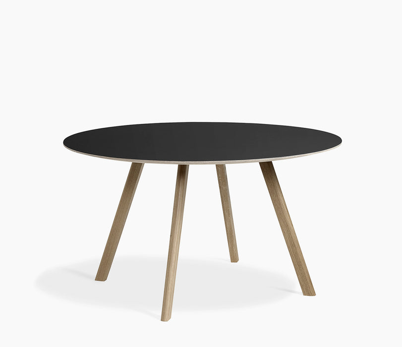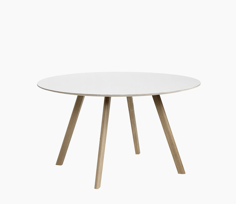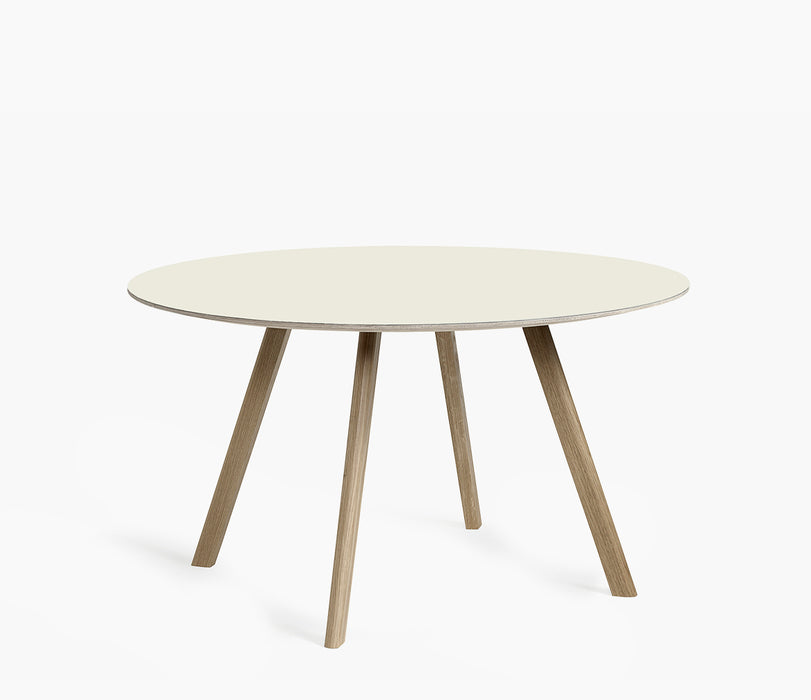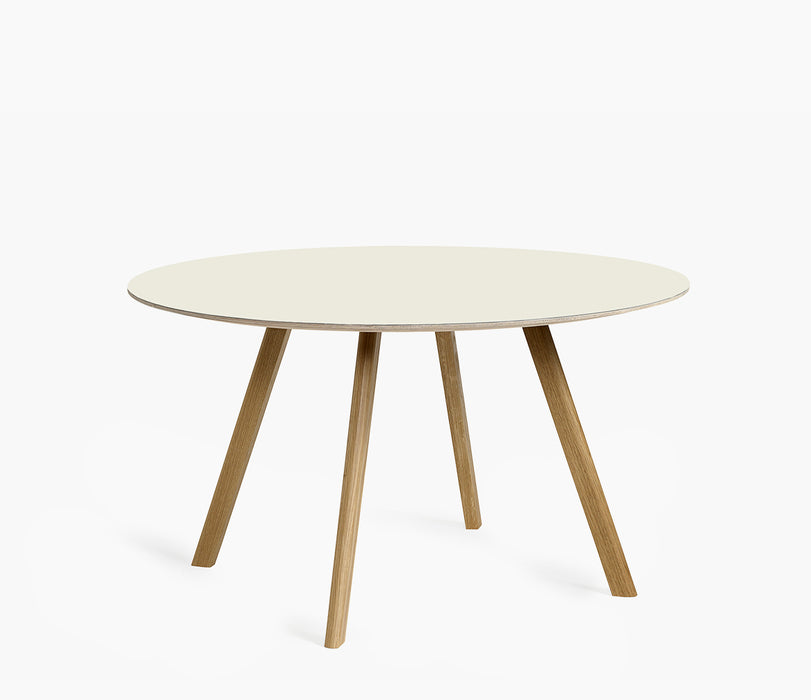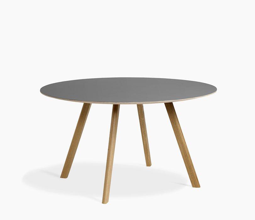 Partilhando as mesmas pernas angulares características que o resto da gama dos irmãos Bouroullec, a mesa CPH 25 apresenta um tampo redondo que suaviza a expressão engenhosa. Igualmente adequada para reuniões íntimas e ambientes maiores, semelhantes a cafés, esta mesa versátil tem a capacidade de se misturar em casas particulares, bem como em espaços públicos. As mesas vêm numa variedade de alturas e tamanhos e estão disponíveis em carvalho manchado, acabado com sabão e lacado, com tampos de mesa em folheado, laminado ou linóleo.