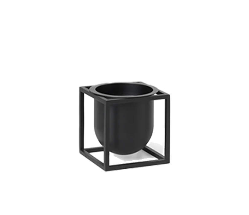 A pot for herbs, a vase or planter or a simple container; the possibilities are endless with the Kubus Flowerpot 14. Offered in three different sizes – Flowerpot 10, Flowerpot 14 and Flowerpot 23 – the container is deeper than the classic Kubus Bowl, making it a versatile storage solution for everyday objects. As the name suggests, it was originally designed as a home for houseplants and flowers, but with its elegant geometric shape it will sit happily in any space as a standalone piece. Available in white or black powder-coated metal, it stands on a surface or hangs on a wall.