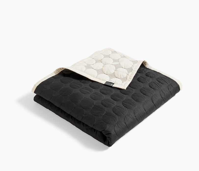 Mega Dot é uma colcha acolchoada com um padrão circular tridimensional que combina ideais de design moderno com expressão gráfica sensual. Feito de algodão puro de alta qualidade para maior maciez e durabilidade, ele está disponível num design monocromático com uma variedade de opções de cores e um design em dois tons com uma cor diferente no verso.