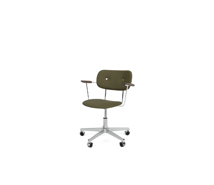 The Co Task Armchair seamlessly integrates sitting comfort and flexible function into its minimalist expression. Designed for a wide range of work settings and set on a five-star Chrome swivel base with casters, a height-adjustable feature ensures adaptability to workspaces and user preferences, promoting ergonomic comfort for users of different heights. Together with supportive armrests and an upholstered seat and back, a flex tilt function enhances comfort, allowing for adjustment to the preferred seating position for optimal support during extended periods of use.