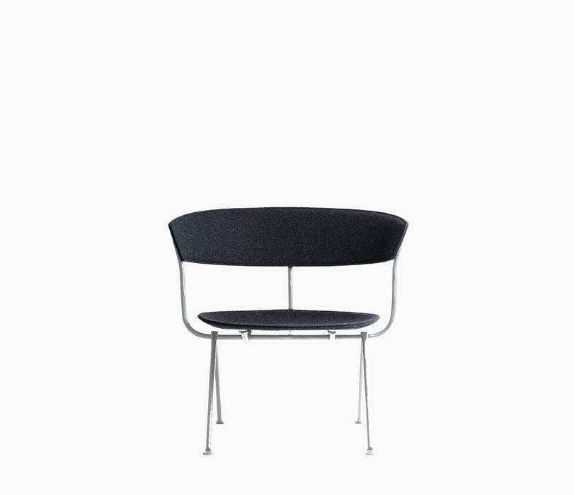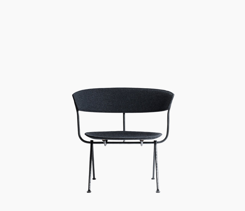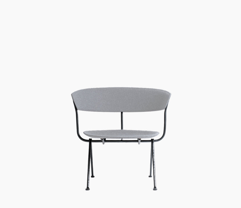 Materiais: moldura em ferro forjado, galvanizado ou pintado a pó de poliester. Assento e encosto em contraplacado de faia, também revestido a tecido (Kvadrat “Divina Mélange” e “Divina MD”) ou em pele premium.