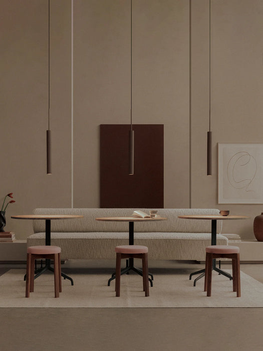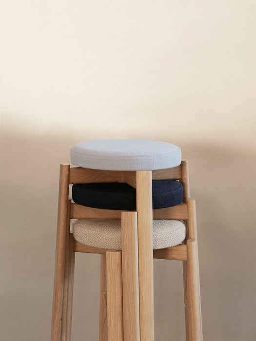 The Passage Collection demonstrates meticulous attention to detail, highlighting a commitment to both comfort and aesthetics rooted in traditional woodworking techniques. In solid, lacquered walnut or FSC™-certified solid oak, the stackable stool presents unique grain patterns inherent to the high-quality hardwoods and a warm and inviting expression. With its upholstered seat, offered in customisable fabric options for a personal touch, the small but perfectly formed design provides a comfortable seating experience for extended periods.