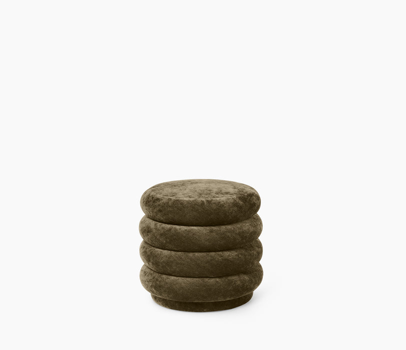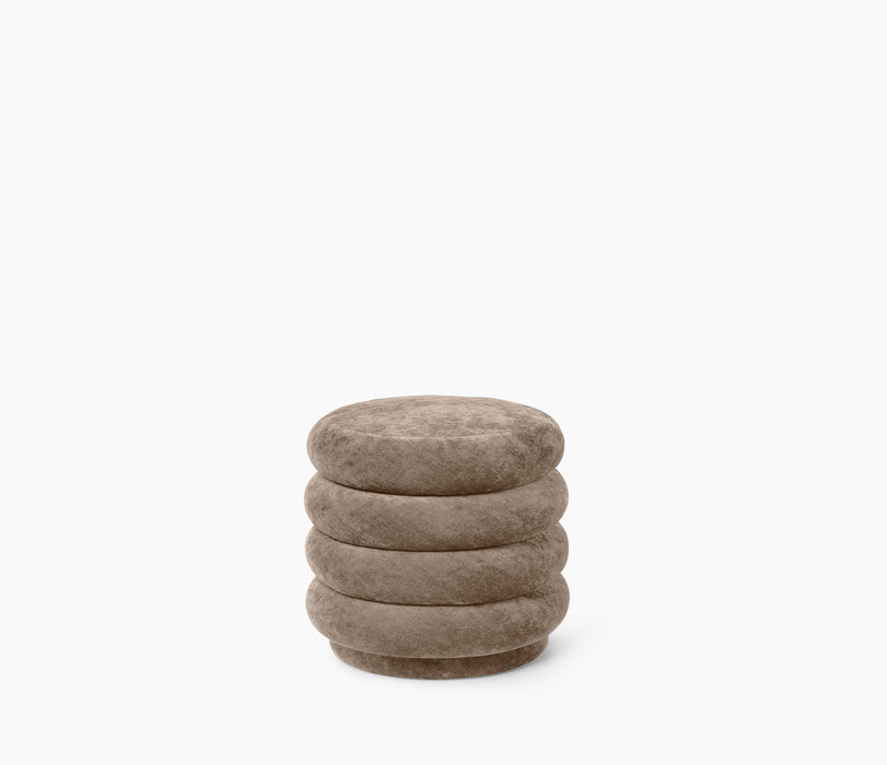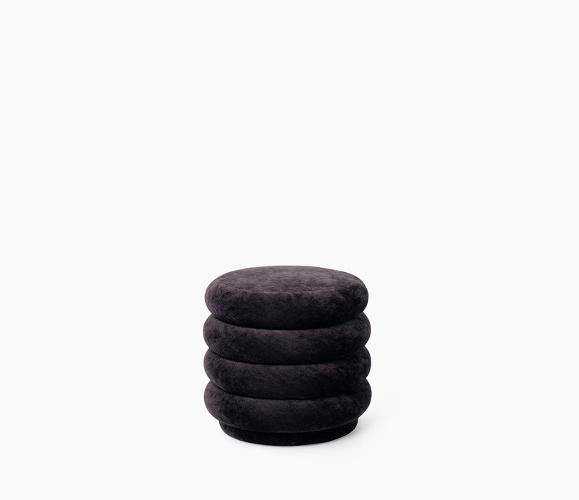 Os contrastes não são apenas cativantes para os olhos, mas também trazem dimensões atraentes para uma sala. Os pufes com dois níveis formam um elemento gráfico, que combina suavidade com um interior moderno. As linhas arredondadas moldam o design distinto conforme o fascínio pela geometria e enfatizam a sua forma simples e natural, produzindo uma expressão mais orgânica na sua casa. Os pufes são feitos de veludo desbotado de alta qualidade, criando um assento exclusivo e durável.