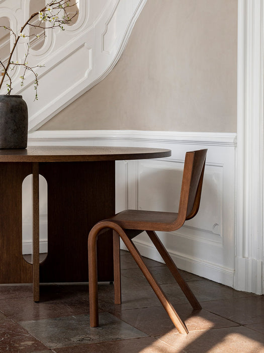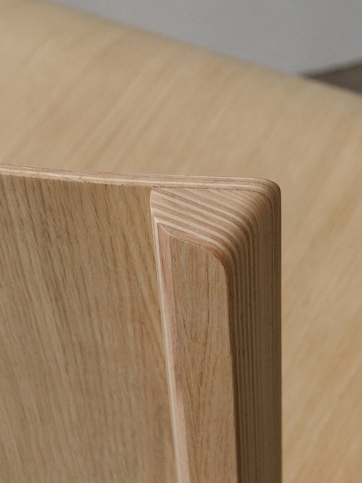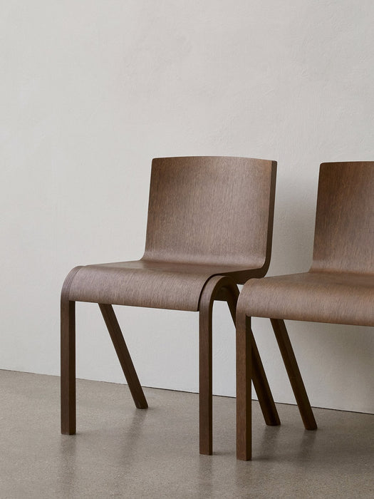 O resultado de um estudo das possibilidades das técnicas de prensagem de formas, Ready Chair, criado para MENU por Matias Møllenbach e Nick Rasmussen, segue as sugestões de designs clássicos de cadeiras de giro livre, seu assento e encosto em balanço parecendo suspensos no ar. Disponível em folheado a carvalho com certificação FSC ™, vem com acabamento em carvalho natural ou tingido de vermelho e com a opção de assento e encosto estofados. Com um tamanho perfeito para ser usado como cadeira de jantar, seu design empilhável e recurso de conexão de fileira a tornam igualmente adequada para uma infinidade de outros usos.