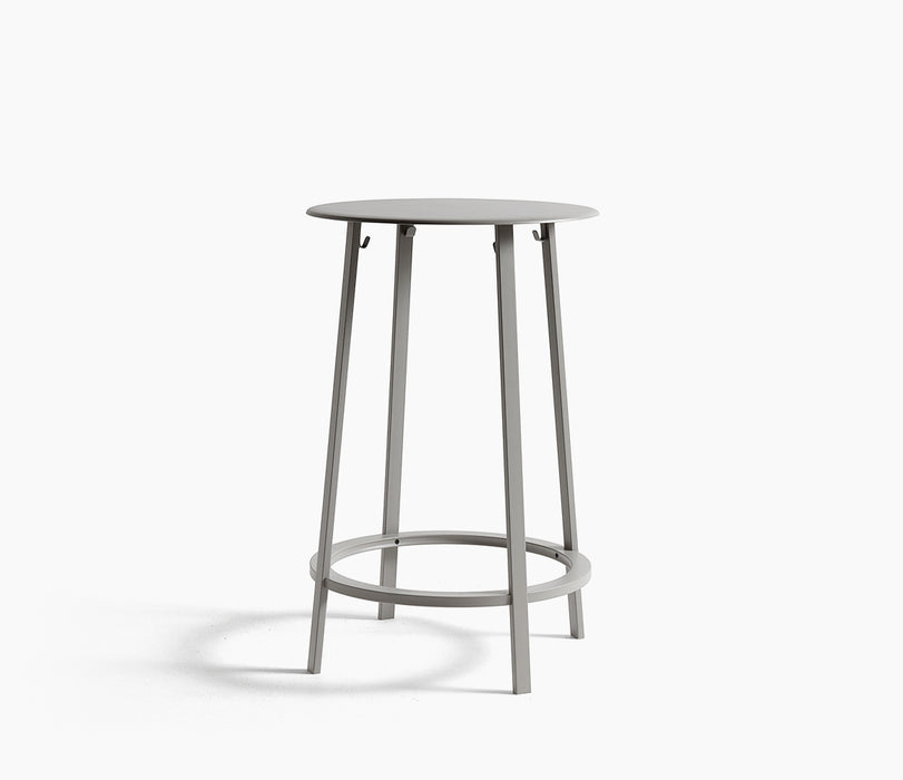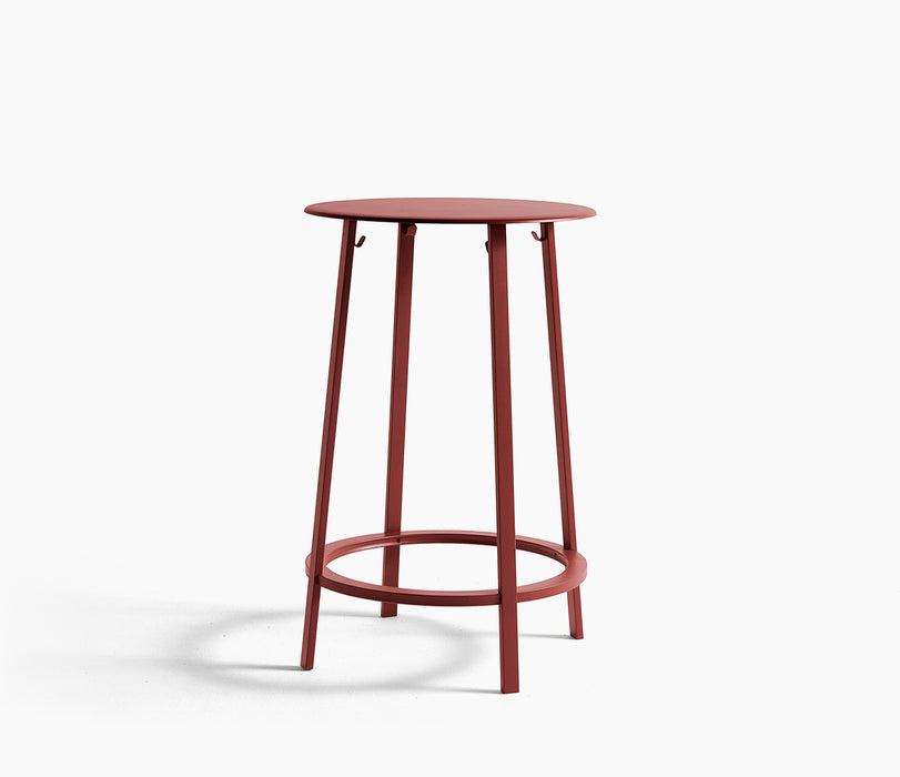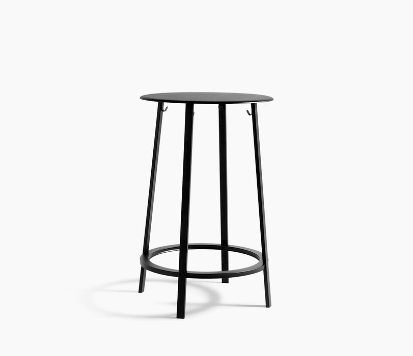 Concebida para acompanhar a família de bancos Revolver, a Mesa Revolver de Leon Ransmeier é feita em aço revestido a pó e apresenta as mesmas arestas curvas e sentido de simetria. Em termos de funcionalidade, o apoio de pés circular fornece apoio, enquanto ganchos nas pernas da mesa permitem que os casacos e sacos sejam pendurados com segurança por baixo. A mesa está disponível em diferentes cores, e é adequada para uma vasta gama de cafés, restaurantes e outros ambientes públicos.