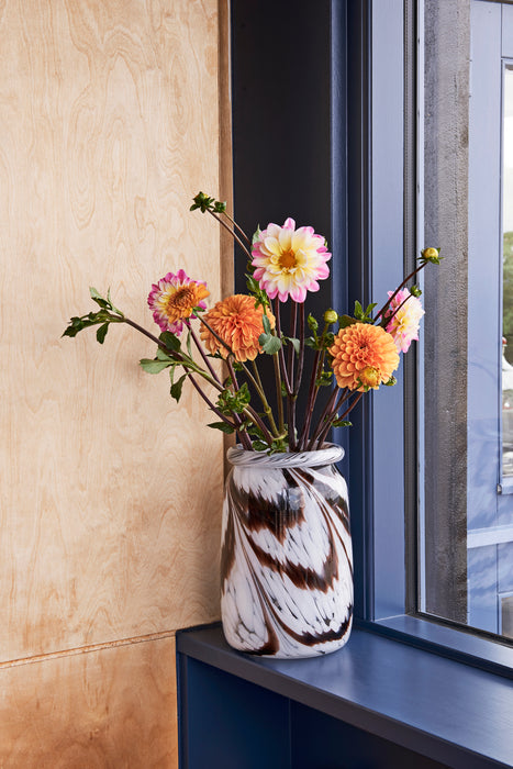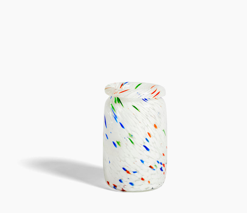 Feito à mão usando uma técnica especial de sopro de vidro que envolve várias camadas de pontos de vidro coloridos, o Splash Vase apresenta um padrão espiralado exclusivo. Disponíveis em diversos modelos e tamanhos, os vasos podem ser usados tanto para expor flores quanto como objetos decorativos.