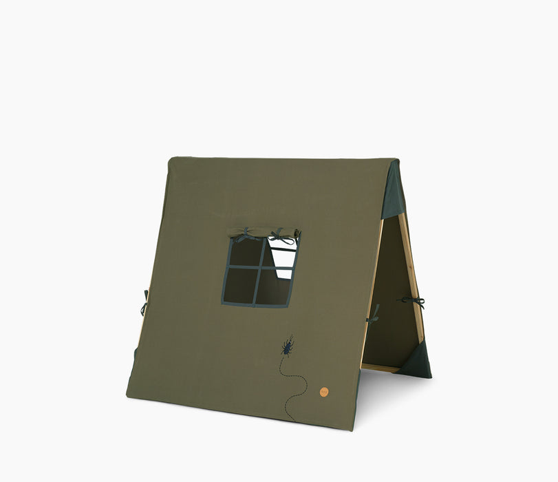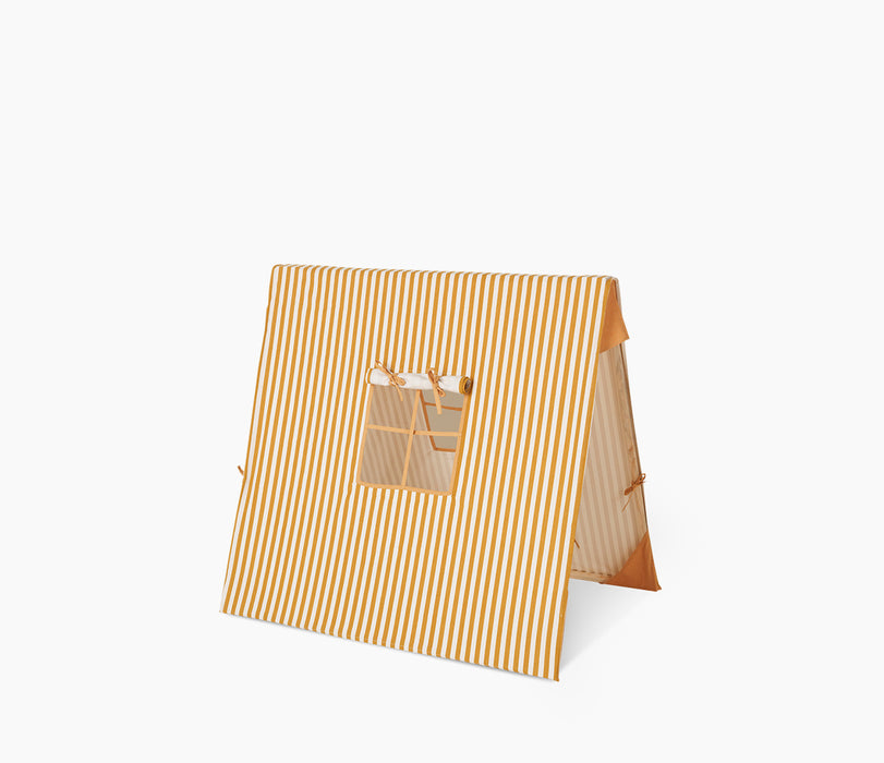 Crie um refúgio para os seus pequeninos com esta tenda decorativa. Um toldo de algodão suspenso numa estrutura de madeira cria um local protegido para as crianças brincarem, lerem e relaxarem — completo com janelas que apresentam persianas para maior privacidade. O prático design dobrável pode ser transportado e armazenado com facilidade.