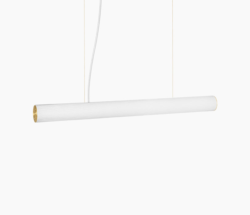 Combinando complexidade textural com simplicidade moderna, o Vuelta Pendant apresenta vidro translúcido cilíndrico com uma superfície ondulada distinta e acabamentos em metal escovado. Com uma fonte de luz LED que emite uma luz suave e difusa, o Vuelta Pendant vem com um controle remoto ajustável para controle de ambiente final. Use o pingente sozinho ou pendure várias lâmpadas seguidas para uma declaração brilhante e uniforme.